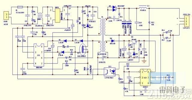 ●對于偏小磁芯變壓器的設(shè)計(jì):主要有磁芯Ae面積偏小的問題,將會(huì)帶來初級圈數(shù)偏多的現(xiàn)象??梢赃m當(dāng)提高工作頻率,本案例工作頻率在70KHz-75KHz。由于圈數(shù)偏多初次級的耦合將會(huì)更有利。所以VCC繞組電壓在短路瞬間會(huì)上沖到比較高的狀態(tài),本案例原理圖上有可控硅做過壓保護(hù)功能。而后因?yàn)榇渭壚@組的短路耦合到VCC繞組使其電壓降低到IC不能啟動(dòng)這個(gè)過程是可以實(shí)現(xiàn)的。
