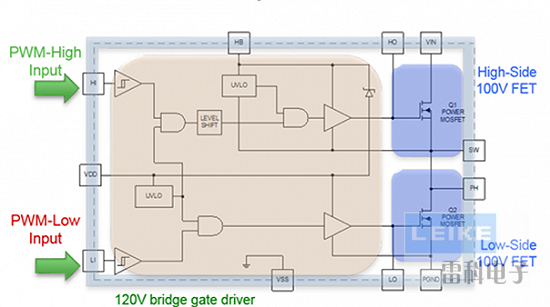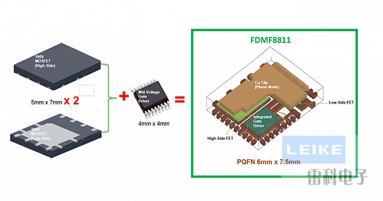 如果PCB面積不是問題,那FDMF8811可有助于在現(xiàn)有的PCB面積內(nèi)提高設計的輸出功率。例如,這可通過從現(xiàn)有的、本來低功率拓撲結構,如有源鉗位正激、反激式或推拉式,轉為采用FDMF8811的半橋或全橋拓撲來實現(xiàn)。另一個例子是現(xiàn)有的采用分立MOSFET的半橋方案可以轉換為在相同的占板面積內(nèi)的一個全橋拓撲。這種轉換使系統(tǒng)的輸出功率加倍。FDMF8811集成了一對100V的功率MOSFET、120 V驅動器IC和一個自舉二極管到6.0 mm x 7.5 mm 的PQFN封裝。